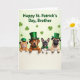 Designed with four friendly animal companions lined up along a white ledge, this St. Patrick’s Day scene feels like a shared moment between close pals. A ginger-striped cat, a sturdy golden-brown dog, a fawn-and-black short-nosed dog, and a small tan pug rest their front paws on the edge and look forward with soft, welcoming expressions 💚. Each one wears an emerald green top hat, and a couple of the hats show a small gold buckle that catches the light. Two of the dogs also have neatly tied green bow ties, adding a sweet, dressed-up touch that suggests they showed up together for the same celebration ☘️. The background fades from brighter lime near the top to a calmer sage tone below, keeping the setting airy and gentle. Near the upper area, dark green text displays a St. Patrick’s Day greeting, with a few faint three-leaf plant shapes scattered around the lettering. Warm, diffused lighting brings out the cat’s stripes, the dogs’ fur textures, and the pug’s facial folds, while the green hats sit centered above each head in a tidy row for sharing St. Patrick’s Day sentiments.