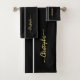 Faux Gold Monogrammed Black White Racing Stripes Bath Towel Set