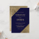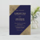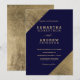 Faux gold navy blue elegant wedding colour block invitation