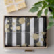 This elegant and swanky gold paint splatter on black and with stripes pattern is perfect for the trendy and stylish woman. It's modern and upscale print is great for many gifts and occasions.