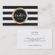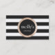 Faux Gold Sequin Black and White Striped Pattern Business Card