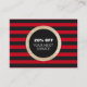 Sparkling digital IMAGE of gold sequins against red and black striped background. Black centre circle emblem. Ideal promotional 20% OFF gift coupon for beauty salons, spas, cosmetologists, estheticians, dance studios, boutiques, designers, hair and fashion stylists or any other image aware professionals. Easily customise 20% OFF to 15% OFF or whatever you desire.