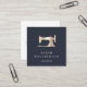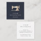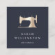 Elegant business cards for seamstresses, fashion designers, and tailors in a unique square format feature a sewing machine illustration in faux gold foil, on a rich navy blue background with two lines of custom text in white. Customise the back with your full contact details.