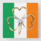 Faux Gold Shamrock Clover Irish Flag Square Wall Clock
