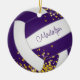 This cute volleyball ornament features the realistic image of a volleyball that has purple & white panels and a sprinkling of tiny gold faux glitter stars, upon which you can customise the player's name on the front and commemorative year on the back - by katz_d_zynes