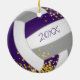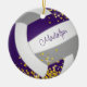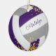 This cute volleyball ornament features the realistic image of a volleyball that has purple, grey & white panels and a sprinkling of tiny gold faux glitter stars, upon which you can customise the player's name on the front and commemorative year on the back - by katz_d_zynes