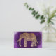 Beautiful hand drawn tribal faux gold elephant on a purple brushstroke background.