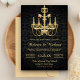 Amaze your guests with this elegant wedding invitation featuring a beautiful gold chandelier against a black damask background. Simply add your event details on this easy-to-use template to make it a one-of-a-kind invitation. Flip the card over to reveal a faux gold glitter texture on the back of the card.