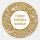 Faux Gold Yellow Glitter Custom Happy Birthday Classic Round Sticker
