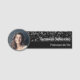 This professional name tag features a name in white on the faux grey sparkle background and the title in white over a black background below with a template photo in the circle on the left. Personalise the text fields or click customise to select a font style, size, and colour you prefer. Replace the placeholder photo with yours. A close-up square photograph works best. You can also add this design, where it fits appropriately, to one of the products shown in the transfer scroll bar on this page like the bag tag.
