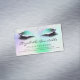 Keep your business top of mind with this glamourous modern business card magnet, featuring a pair of long-lashed eyes adorned with faux glitter green and purple eye shadow and lined with sparkling diamonds on a faux holographic background image in purple and green. A sprinkling of faux glitter decorates the top edge of the card. Personalise it with your name in black handwriting-style script and business information in black sans serif font.