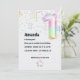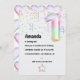 Iridescent themed number balloon first birthday party invitation. Please note that the iridescent effect is simulated.