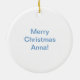 A double-sided blue ornament featuring a faux clay detailing in crisp white. Add your own personalised message and make this a great holiday gift!