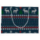 Faux Knitting Pattern Christmas Tree and Deer Large Gift Bag