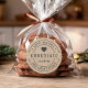 Rustic Faux Kraft Bold "Homemade Goods Kitchen Happy Holidays" sticker featuring dark grey heart, text all in dark grey against a kraft like pattern background. It's perfect for labelling what you've made.