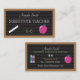 Faux letter board designer business cards with a pink dotted apple and 3 books . They're perfect for teachers , substitute teachers , teacher aides , tutors , educators , etc . They're very easy to personalize . Simply fill out the temple with your own information .