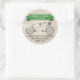 Faux Linen Green Tandem Bicycle Wedding Classic Round Sticker