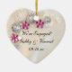 I ordered this for my daughter and son-in-law. They were married in June 2014 and this is their first Christmas as husband and wife. I used the blank heart shape ceramic ornament and uploaded a picture from their wedding. I was able to crop and customize the picture as well as any printing on the back (good selection of fonts.) Because of time constraints, I had the ornament shipped directly to my daughter so I was a little worried about how the final product would actually look but it was beautiful and she loved it! I have attached a picture of the front and back that she sent me. The picture is a little dark but you can see the ornament is a good size and how pretty it is (the ribbon to hang it on the tree came with it too.). The printing was excellent - very clear and beautiful.