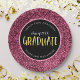 Faux Pink Glitter Graduate Graduation Paper Plate