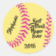 Faux Pink Glitter Softball Stitches Classic Round Sticker