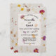 A wedding invitation featuring a pressed flowers paper style background. There are no pressed flowers in this invitation. The pressed flowers are digitally simulated.