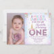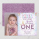 Faux Purple Glitter One Photo Unicorn 1st Birthday Invitation