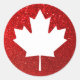 Faux Red Glitter White Maple Leaf Classic Round Sticker
