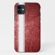 Simple and classic Faux Red Leather & White Team Jersey Stripe iPhone 5s Case.  Great for dads, brothers, grads and friends.  Customise with a name and/or jersey number.