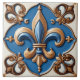 Faux Relief Blue & Gold Fleur de Lis Tile