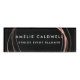 Chic black nametag features your name and title or company in modern white lettering, accented by faux rose gold foil abstract streaks. A beautiful choice for wedding planners, special event professionals, salon employees and more.