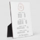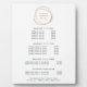 Elegant pricing and services stand design displays your services, price list or business information beneath a faux rose gold abstract circle logo, framing your name and/or business name. . Includes four customisable headings and body text fields, and space for your business contact information along the bottom. To adjust layout, enter your text and then use the Customise function to change positioning and font sizes.