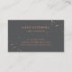 This stylish, modern business card features a trendy faux rose gold circle and splashes on a charcoal grey background, with matching rose coloured text.