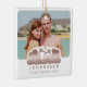 Celebrate your first Christmas together with our "Mr & Mrs Modern Rose Gold Couple Photo Christmas Ceramic Ornament." This elegant and customisable ornament features a radiant rose gold design, including the "Mr and Mrs" quote with wedding rings and hearts. What makes it truly special is that below this design, you can personalise it with your family name and wedding date, selecting the font style and size that suits your taste. Capture the magic of this special season with a keepsake that marks the beginning of your journey as a married couple. It's also a perfect gift for newlyweds or anyone celebrating their first Christmas together.