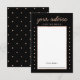 For the most stylish bridal shower game ever, pass out these "your advice for the bride" cards to your guests! Fancy typography appears in a faux rose gold colour, with matching dots on the front and back. The background is a deep black which really sets off the design.