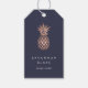 Chic hang tags for your business feature a faux rose gold foil pineapple on a rich midnight blue background, with two lines of custom text beneath in white. Backs are solid white for your additional custom text or handwritten message. Coordinates with our Pineapple office suite in four elegant colorways.
