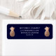 These elegant return address labels feature two tropical faux rose gold pineapples on a dark, navy blue background for a modern yet classic look.