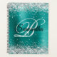 Faux Shiny Silver Glitter Aqua Teal Foil Monogram Planner