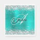 Faux Shiny Silver Glitter Turquoise Foil Monogram Napkin