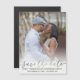 Send our portrait picture save the date postcards with a casual, modern script in faux silver foil to let your guests know to block off your wedding date. You can choose from one of the available predesigned colour schemes, or you can select one of the flat coloured designs (with black text, for example) and then be able to change the colours to whatever custom colour you would like. Just click on the "Edit Design" button, click on the text you would like changed, and then add your custom colours. Be sure to check out our large selection of photo save the date cards, postcards, and magnets by browsing our Picture Save the Date collection!