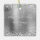 Faux Silver Glitter and Brushed Metal Foil Photo Ceramic Ornament