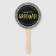 Stylish round graduation hand fan featuring a faux silver glitter border and the word "Graduate" in trendy faux gold foil on the front. On the back you can add the graduate's photo.