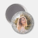 Create your own girly glam round magnet featuring a round faux silver grey glitter border.
