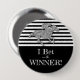 A button featuring a racing horse in faux silver glitter on black and white stripes at the top and a solid black area at the bottom for your custom personalisation. **HINT: GUESTS CAN WRITE THE NAME OF THEIR HORSE WITH A SHARPIE OVER THE TOP OF THE HORSE! MATCHING items in our store.