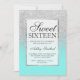 Faux silver glitter teal chic Sweet 16 Invitation