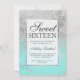 Faux silver glitter teal floral chic Sweet 16 Invitation