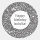 Faux Silver Grey Glitter Custom Happy Birthday Classic Round Sticker