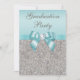 Faux Silver Jewels Teal Bow Girls Graduation Party Invitation