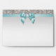 Faux Silver Sequins Diamonds Teal Bow Envelope