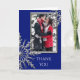 Faux Silver Snowflake on Blue Thank You Note Photo Card