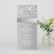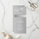Elegant, modern boho, glam, stylish, chic faux silver wedding program with vintage floral lace and string lights.